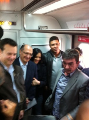 Ronaldo provocou uma comoção enorme na chegada à estação da Luz, no centro da cidade. Acompanhado do presidente do Corinthians, Andrés Sanchez, o craque tirou fotos com fãs, vendedores e até políticos, deixando Alckmin e Kassab em segundo plano. No Twitter, ele comemorou a experiência.